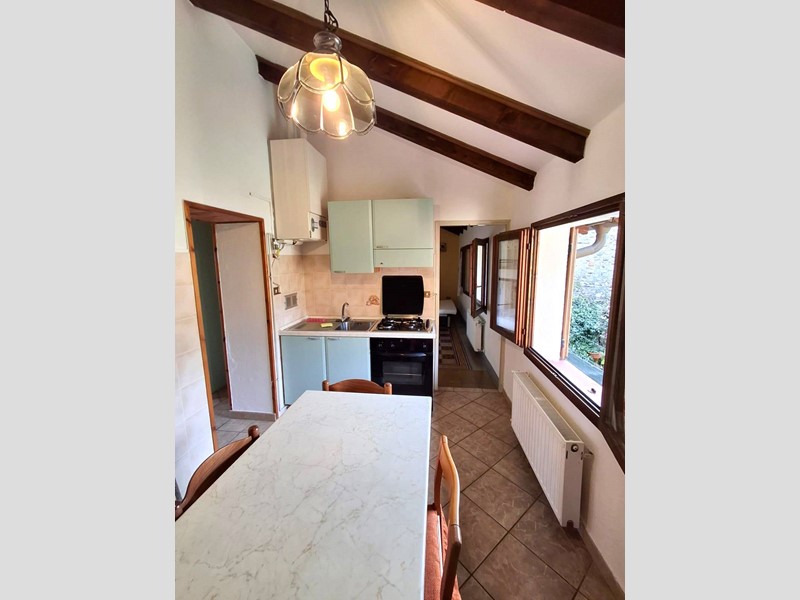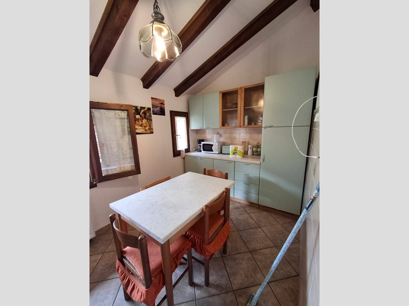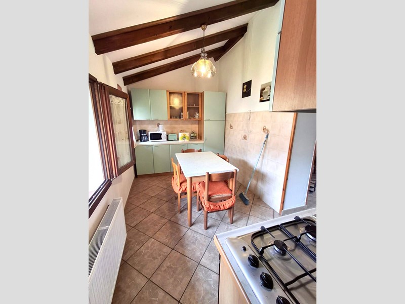 La cucina e le camere hanno travi a vista. I locali hanno ampie finestre e sono tutti molto luminosi.