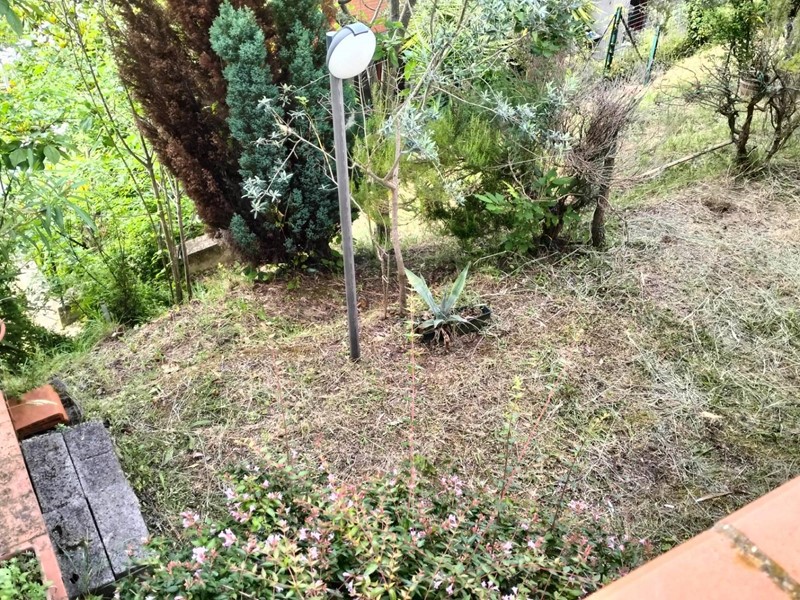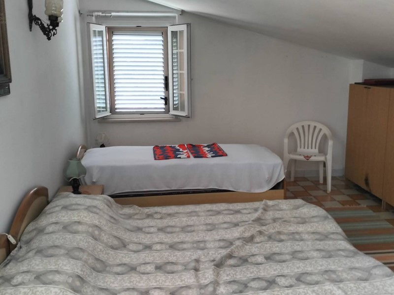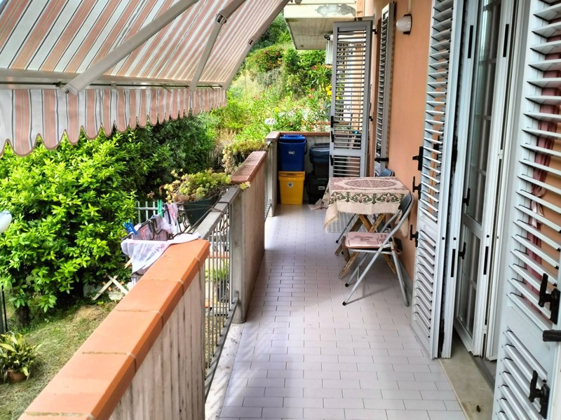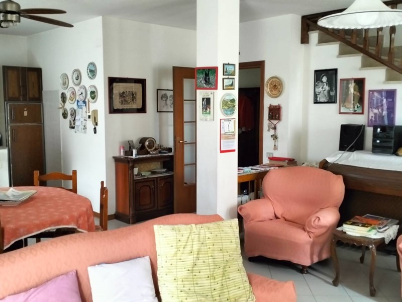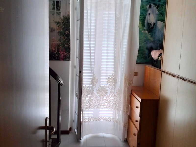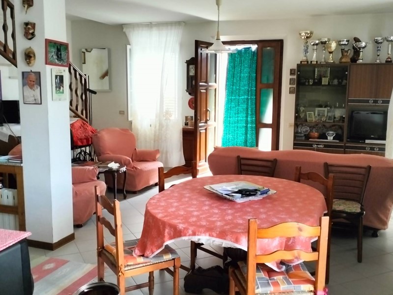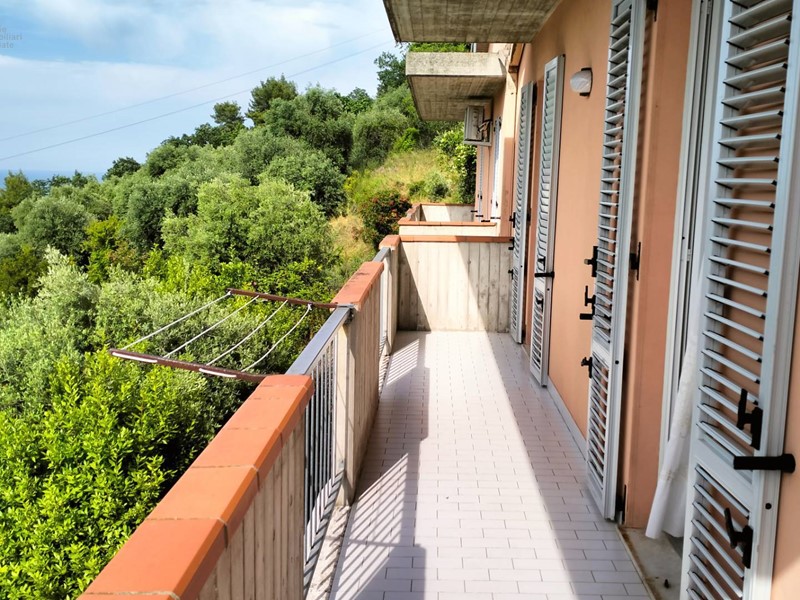 Villino a schiera con "vista mare" della superficie complessiva di 210 mq circa sviluppati su 4 piani (seminterrato-terra-primo e secondo sottotetto), i piani seminterrato, terra e primo sono collegati tra loro con una comodissima scala. L'intera abitazione è costituita da cantina/rustico e ripostiglio al piano seminterrato; soggiorno con cucina a vista, bagno e balcone al piano terra; 2 camere matrimoniali, 1 studio/cameretta, bagno e balcone al piano primo; dal piano primo, attraverso una scala a chiocciola, si arriva al piano secondo sottotetto (h. max 2,45 - min. 1,45) dove c'è un ampio vano utilizzabile come studio o quarta camera e un piccolo bagno di servizio. La proprietà si completa con un comodissimo garage di mq 25 circa posto al piano strada dal quale, grazie ad una porta interna, si può accedere direttamente nel soggiorno; vari balconi di complessivi mq 36 circa da cui si gode sia di vista mare che delle colline circostanti; il giardino di mq 100 circa dove è possibile posteggiare l'auto. Molto buono lo stato manutentivo dell'alloggio pronto ad essere abitato, pavimenti in gres sull'intera superficie, tutti gli impianti perfettamente funzionanti, le finestre in doppio vetro e le persiane in alluminio. L'abitazione totalmente indipendente è porzione di una quadrifamiliare costituita da altre 3 unità abitative simili. Posizionata a poco più di 1 km dal centro cittadino in zona residenziale molto panoramica.