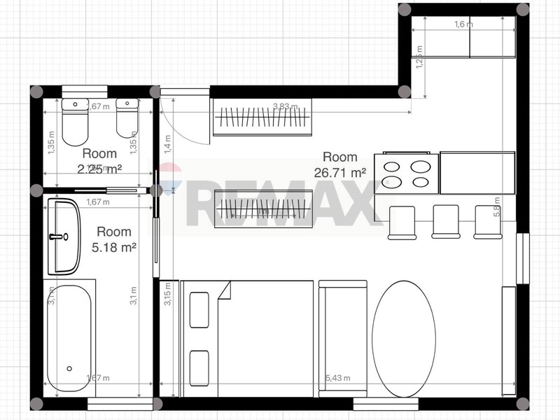 Con una superficie totale di 48mt calpestatili ed essendo un grande ambiente indiviso estremamente luminoso e in doppia esposizione offre uno spazio funzionale per ospitare una coppia o un single o due studenti .. quindi ottimo e semplice da mettere a reddito!