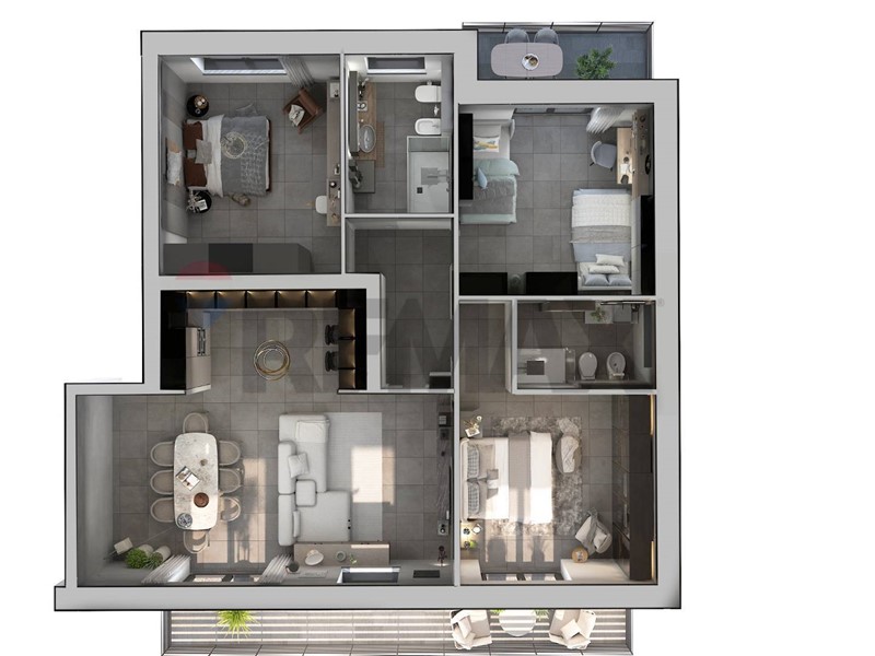 Gli appartamenti, distribuiti su 4 piani tutti serviti da ascensore, sono composti da zona giorno di generosa metratura con cucina a vista e collegamento diretto al terrazzo dal quale si può godere della meravigliosa vista sopra descritta. La zona notte è divisa in 3 camere da letto, tutte con la metratura di una camera matrimoniale, di cui una con bagno padronale finestrato en suite e affaccio diretto sul terrazzo e una dotata di balcone privato. Infine troviamo il bagno principale finestrato.