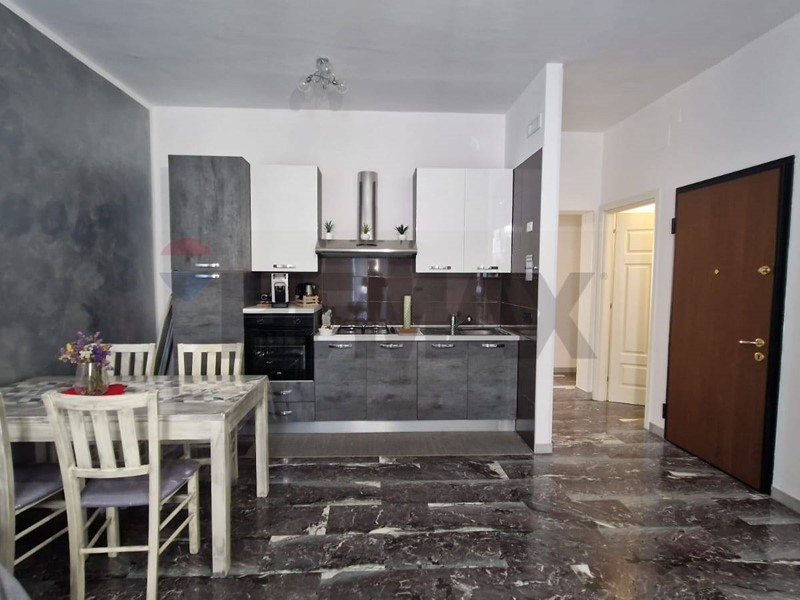 L'abitazione fa parte di un piccolo palazzotto costruito negli anni '70, recentemente ristrutturato, composto da sole quattro unità abitative. Siamo al secondo piano, unico appartamento al piano, all'ingresso ci accoglie una grande zona living open space con cucina a vista, l'essenziale disimpegno ci conduce nella zona notte, grande vano letto matrimoniale, vano letto singolo, comodo bagno con finestra e grande ripostiglio.