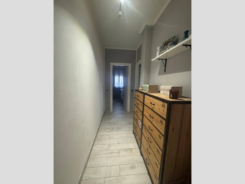 Limmobile è completamente ristrutturato in chiave moderna e si presenta con spazi ben distribuiti e funzionali. Lingresso si apre su una luminosa zona giorno con sala e cucina a vista, valorizzata dalla presenza di due balconi. La zona notte comprende due camere da letto, ripostiglio e bagno.