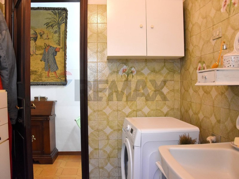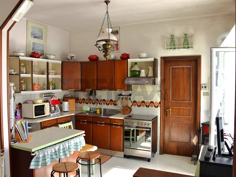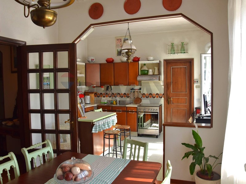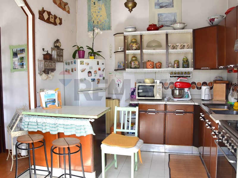 Un'ampia porta a vetri divide la zona pranzo che a sua volta è separata da un arco dalla cucina semi-abitabile con angolo colazione e portafinestra per la terrazza. Presente anche una comoda dispensa.