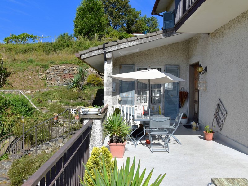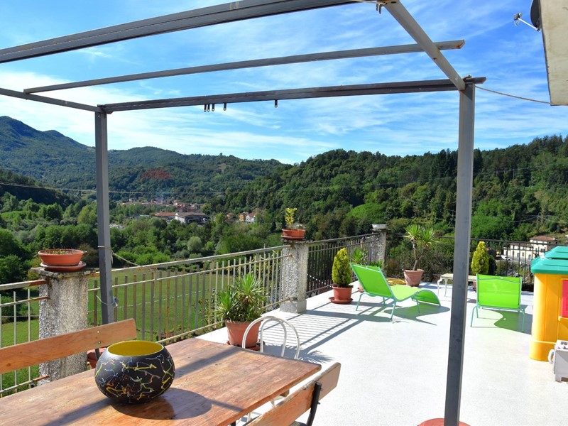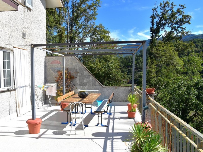 Completa la proprietà giardino-terreno intorno alla casa di 1.300 mq in parte attrezzato con gazebo , altalena , piscina gonfiabile, in parte a terrazzamenti e il resto bosco.