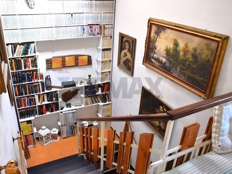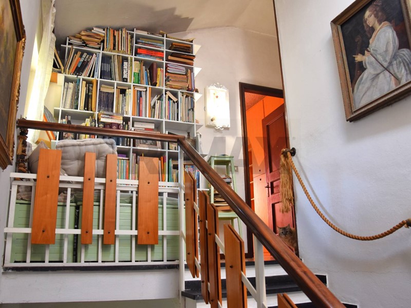 Qui, sulla sinistra: la bella e arredata scala con libreria fino al tetto per il piano notte con sottoscala sfruttabile!