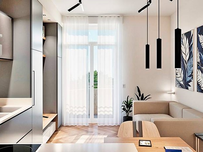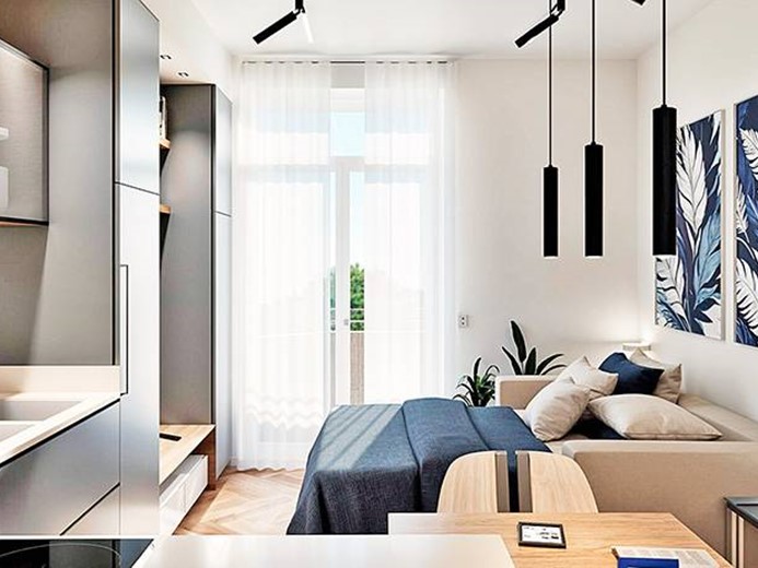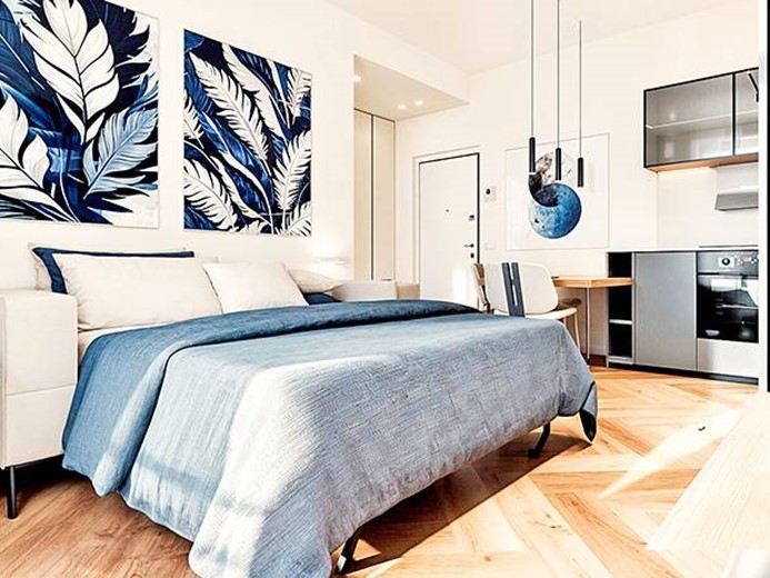 Internamente l'appartamento sarà composto da ampio ingresso con ripostiglio / lavanderia, ampio soggiorno/letto con angolo cottura e accesso al balcone, ampio bagno finestrato.