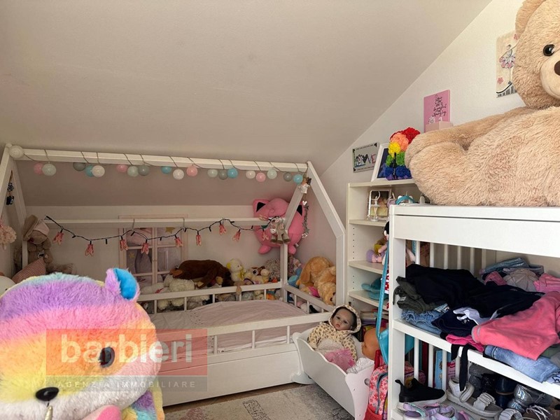 L'ingresso ci conduce ad un ampio e luminoso soggiorno con angolo cottura dotato di terrazzo, ideale per pranzare e cenare all'aperto. Dal disimpegno si accede alla zona notte composta dalla camera da letto matrimoniale con accesso al balcone e il bagno finestrato con box doccia. Mediante scala interna si accede al piano mansardato dove è troviamo altre due camere da letto e un ulteriore bagno. Completa la soluzione il posto auto di proprietà e il garage al piano interrato.