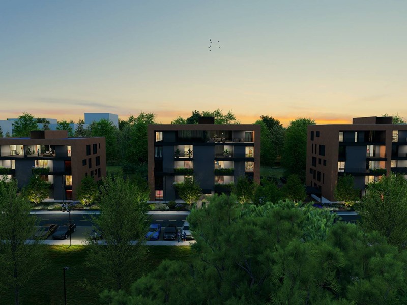 L'appartamento, in corso di costruzione, sarà terminato per Giugno 2028 con rifiniture a scelta dell'acquirente come e pavimentazioni in parquet o Grace porcellanato, infissi in alluminio certificati, impianto di riscaldamento a pavimento, impianto di climatizzazione caldo e freddo con split in ogni stanza, portoncino blindato d'ingresso, video citofono smart con risposta da smartphone, illuminazione esterna del fabbricato Guzzini, struttura antisismica.