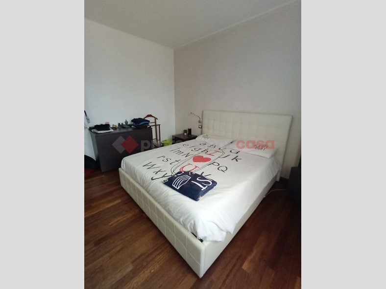 La zona notte offre due camere da letto. Sia la camera principale che la seconda camera presentano una disposizione funzionale e sono caratterizzate da un parquet scuro. Gli ambienti sono intimi e rilassanti.