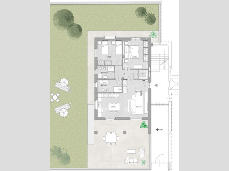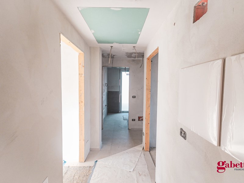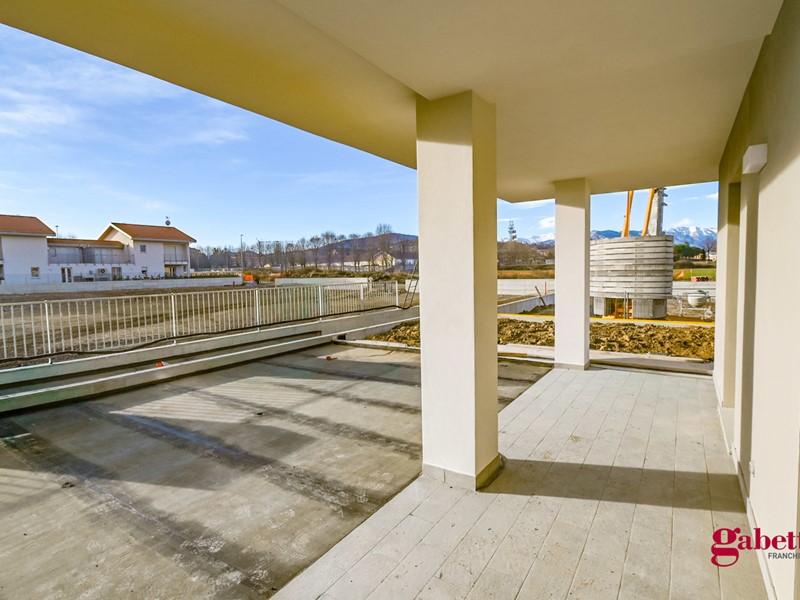 Situato al piano terra di un complesso residenziale signorile in costruzione, l'appartamento si compone con ingresso su zona giorno open - space, disimpegno, due camere da letto, due bagni, ripostiglio e l'area esterna esclusiva, ad uso giardino, portico e lastrico solare.
