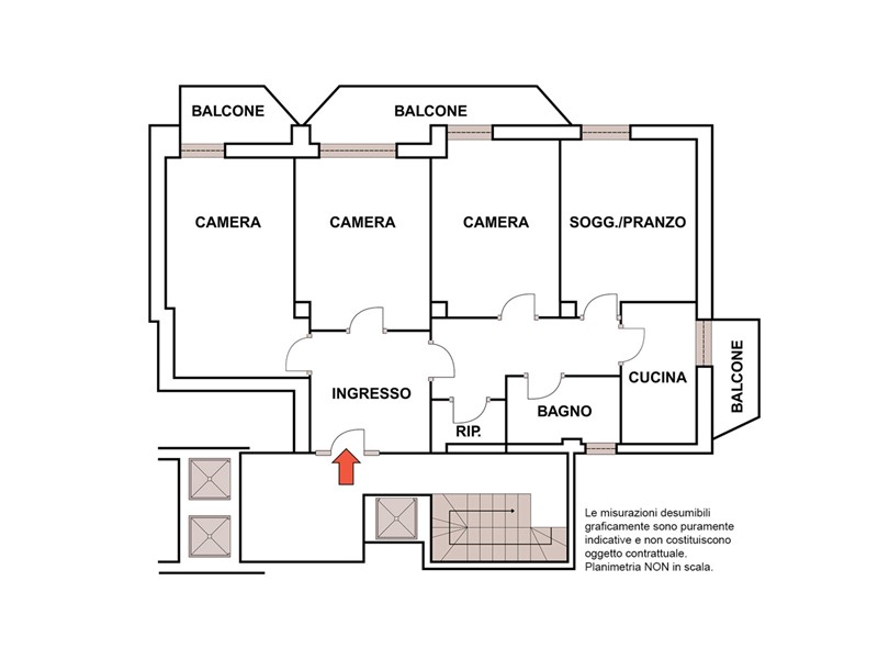 NOTE: La soluzione si presta a poliedriche personalizzazioni: attualmente gli spazi sono distribuiti come TRILOCALE, ma può essere agevolmente ricondotta alla declinazione originale (QUADRILOCALE).