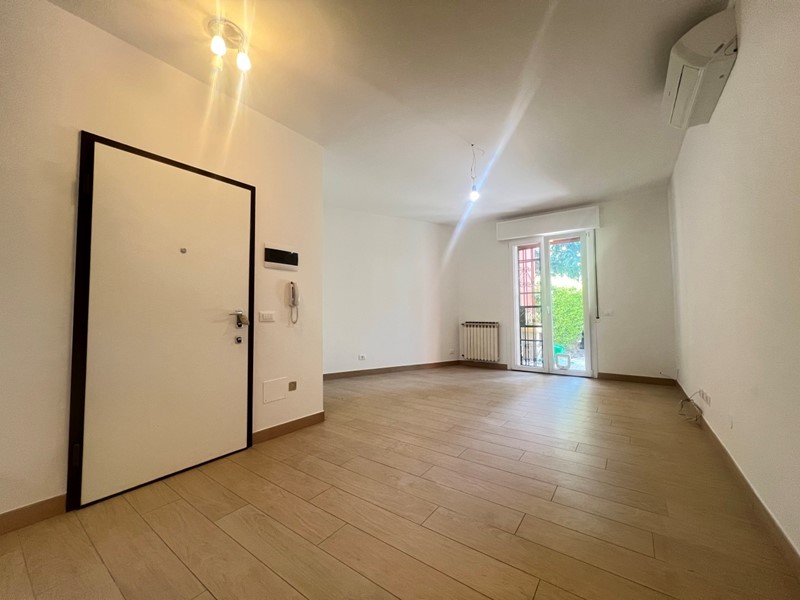 L' abitazione è composto da ingresso su soggiorno con accesso al cortile privato e angolo cottura (arredato), il giardino privato si affaccia sul parco condominiale, disimpegno, due camere da letto matrimoniali, ripostiglio e bagno con ampia doccia.