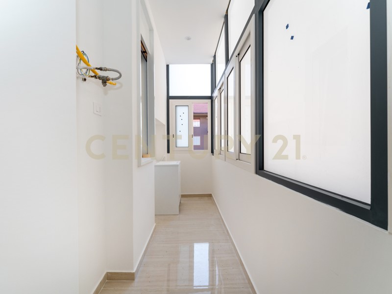 La distribuzione interna comprende l'ingresso sulla zona living cucina abitabile, due camere da letto, un bagno moderno, un ripostiglio e una comoda lavanderia, elementi che garantiscono funzionalità e comfort nella vita quotidiana.