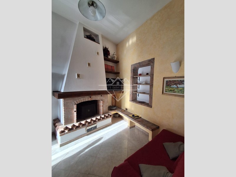 Zona Giorno Accogliente: Soggiorno luminoso arricchito da un camino, elemento centrale che dona carattere e calore a tutto l'ambiente.