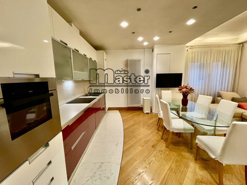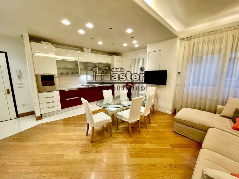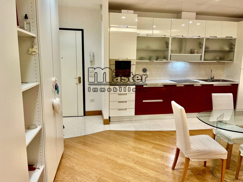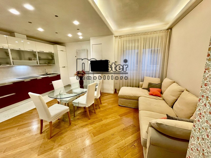 Posto al secondo piano, in zona molto tranquilla, l'appartamento tutto con pavimento in legno è composto da ampio soggiorno con angolo cottura con lavastoviglie, forno frigo e freezer, camera matrimoniale, disimpegno/guardaroba con lavasciuga, bagno con vasca/doccia idromassaggio.