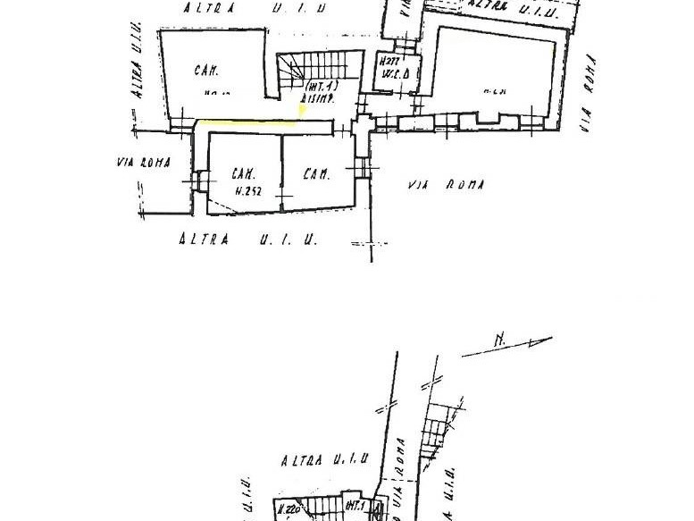 L'immobile è composto da: ingresso al piano terra su disimpegno, scala interna che permette di salire al piano primo nel quale si trovano un altro disimpegno, cucina abitabile, bagno finestrato con doccia, camera da letto matrimoniale e due camere da letto singole.
