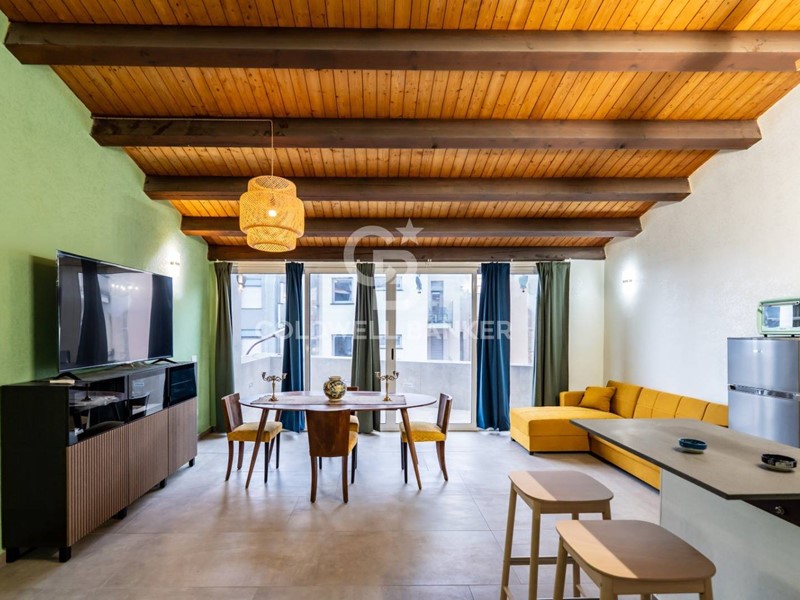 Al primo piano si trova un ampio open space che combina zona cucina, soggiorno e una camera da letto, il tutto arredato con gusto e dotato di tutti i comfort moderni.
