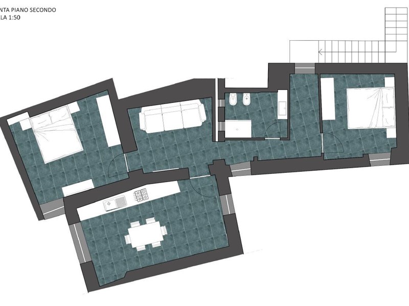 Compreso nel prezzo un giardino sito al piano terra, limitrofo alla scala esterna.
