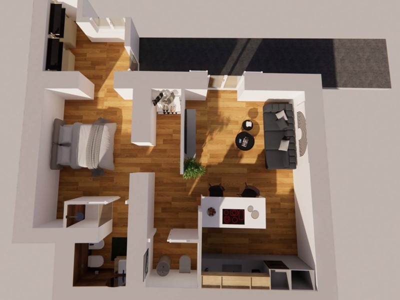 L'appartamento è composto da 3 locali, tra cui una camera da letto e un bagno.