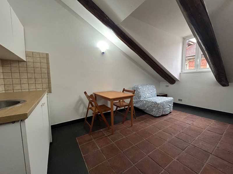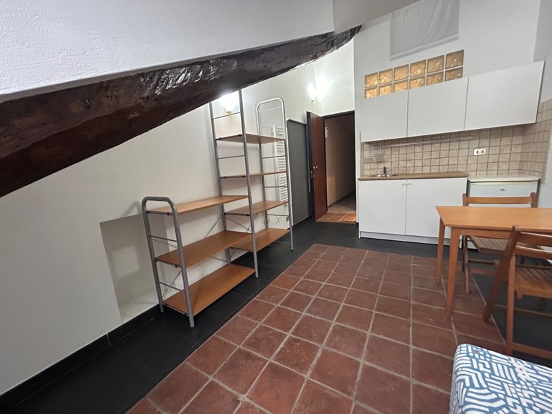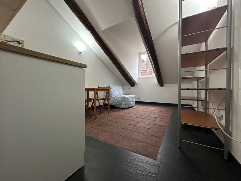L'appartamento è un monolocale mansardato con angolo cottura e bagno ed è libero da subito