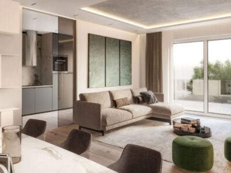 L’ingresso conduce al luminoso living open space con cucina a vista. Dal disimpegno si accede al bagno principale e alla zona notte, composta da due camere singole e una camera matrimoniale con bagno privato completo di tutto. Tutti i locali hanno accesso alle ampie terrazze, spazi ideali per trascorrere momenti di relax all’aria aperta. Completa la soluzione immobiliare la disponibilità di un comodo box auto e di una cantina di dimensioni standard.