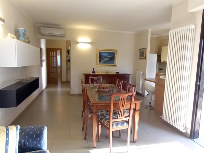 APPARTAMENTO A PIANO TERRENO RIALZATO CON BEL GIARDINO DI PROPRIETA', DOTATO DI VERANDA PER MANGIAR FUORI. SI COMPONE DI: INGRESSO, AMPIA SALA CON ANGOLO COTTURA CON DIVANO LETTO MATRIMONIALE, 2 CAMERE DOPPIE E DUE BAGNI COMODI CON DOCCIA. E' ACCESSORIATO DI LAVATRICE, LAVASTOVIGLIE, ARIA CONDIZIONATA E GRANDE TELEVISORE. ALL'INTERNO DEL CONDOMINIO VI E' UN GRANDE PARCHEGGIO DOVE SI PUO' METTERE COMODAMENTE LA MACCHINA NEL PROPRIO POSTO RISERVATO E LE BICICLETTE. L' APPARTAMENTO SI DISTINGUE PER UN ARREDAMENTO ARMONIOSO CHE UNISCE TUTTE LE COMODITA' ALL' ELEGANZA. L'ECCELLENTE POSIZIONE FA SI CHE USCITI DI CASA SI ATTRAVERSI LA STRADA E SI TROVI IL MARE. PERIODI DISPONIBILI: