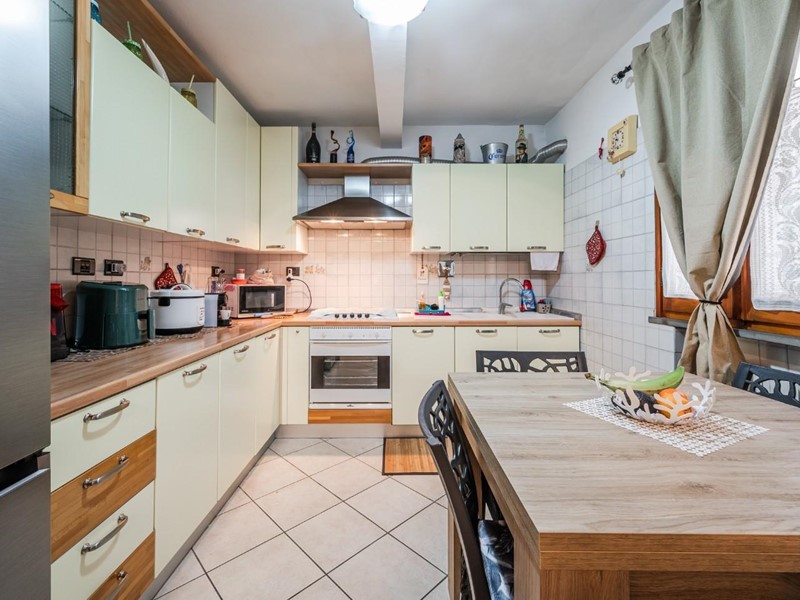 Piano Terra: ampia zona cucina/soggiorno, bagno completamente rifatto nel 2025, lavanderia e ripostiglio.