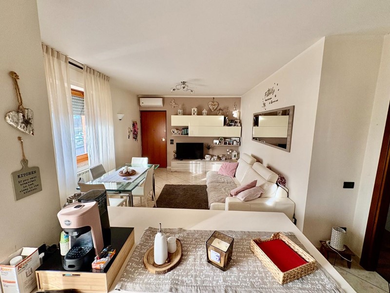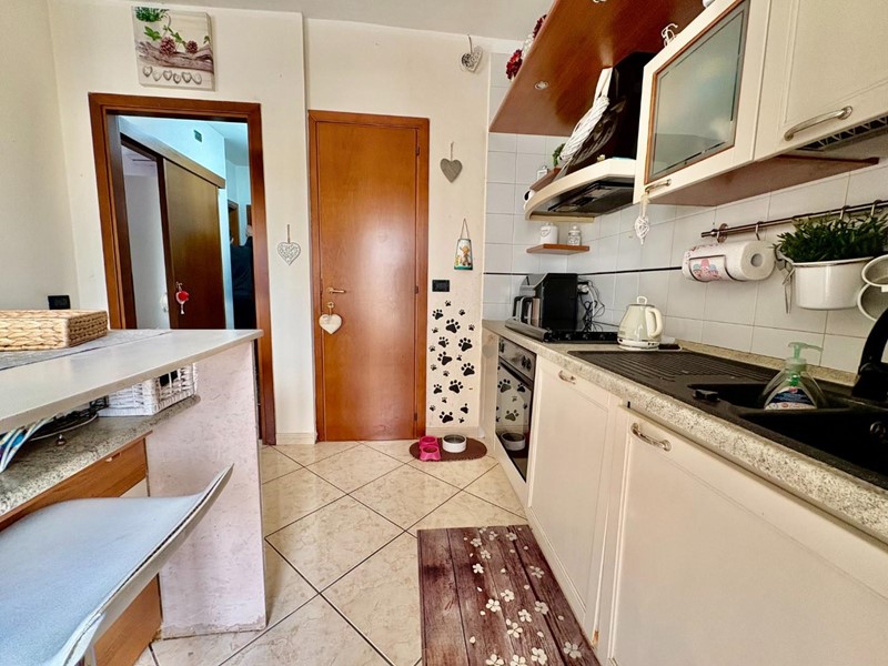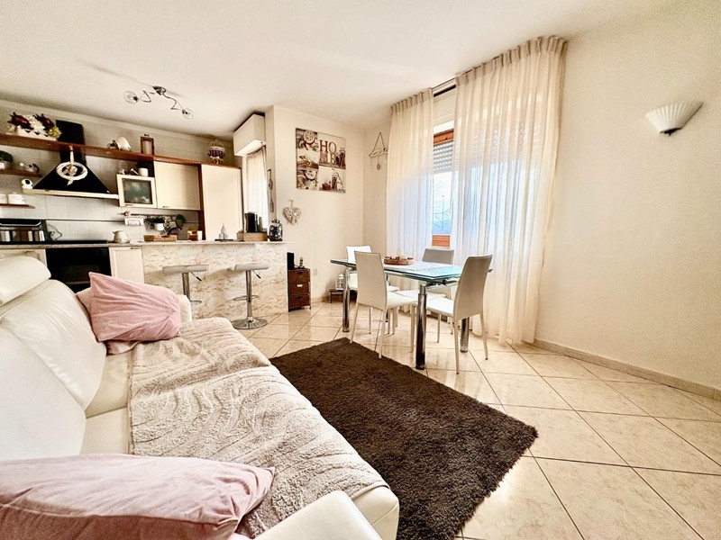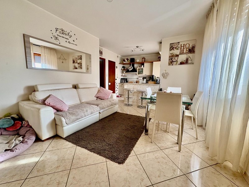 Appena varcata la soglia, ti accoglie un'ampia zona giorno molto luminosa, perfetta per momenti di convivialità e relax. La zona giorno è affiancata da un angolo cottura con penisola, ideale per preparare deliziosi piatti durante cene con amici e familiari. E per rendere l’atmosfera ancora più speciale, tramite una porta finestra potrai accedere a un incantevole terrazzo.
