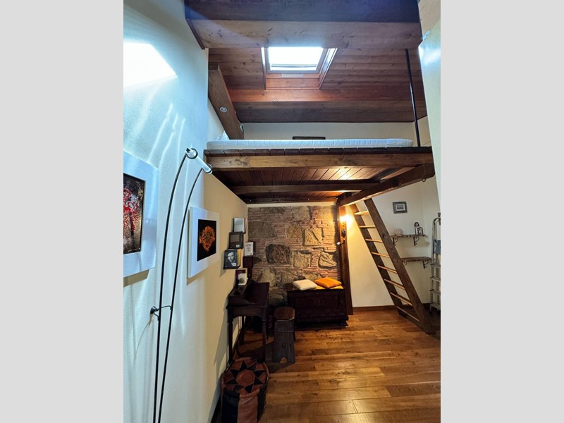 L'immobile è composto dalla zona giorno con angolo cottura, una scala a chiocciola ci accompagna al piano superiore dove troviamo la zona notte composta da una camera da letto matrimoniale con soppalco, un balcone verandato e il bagno, con doccia e finestra.