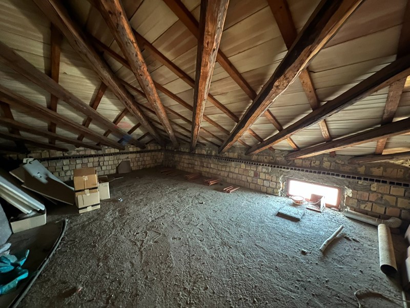 Una soffitta allo stato grezzo offre uno spazio versatile da utilizzare come ripostiglio o da personalizzare secondo le tue esigenze.
