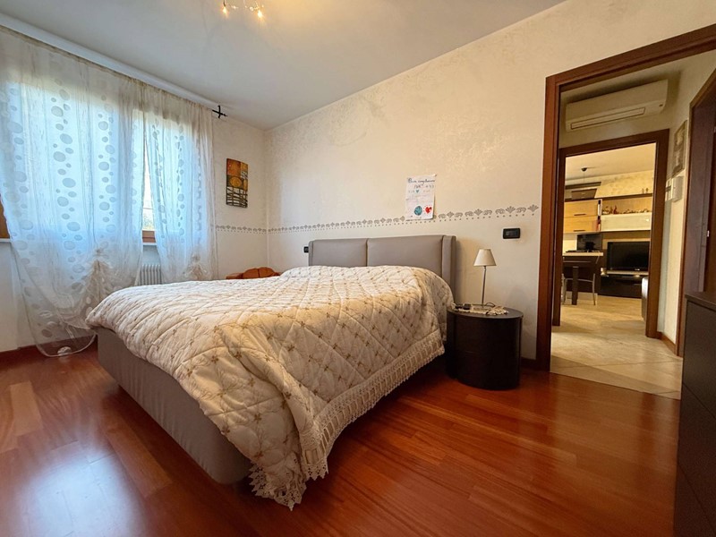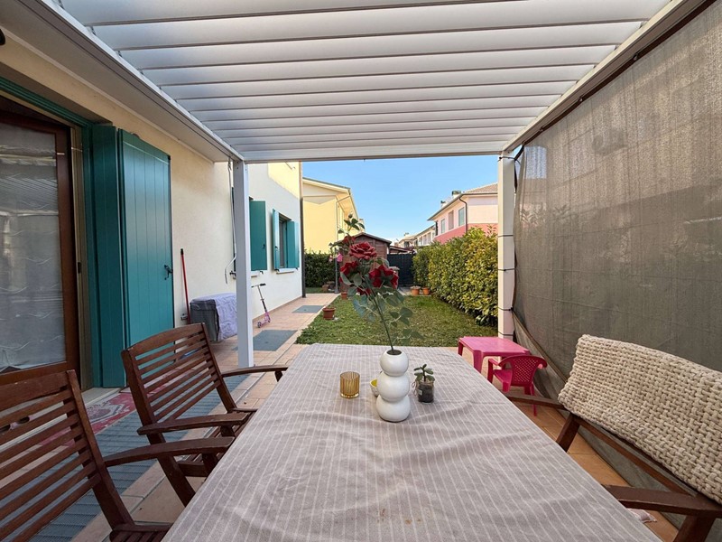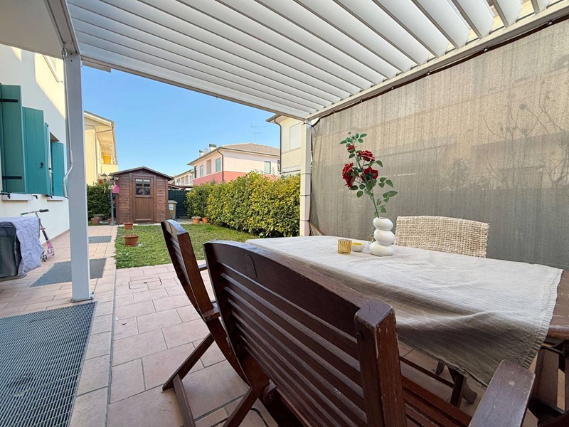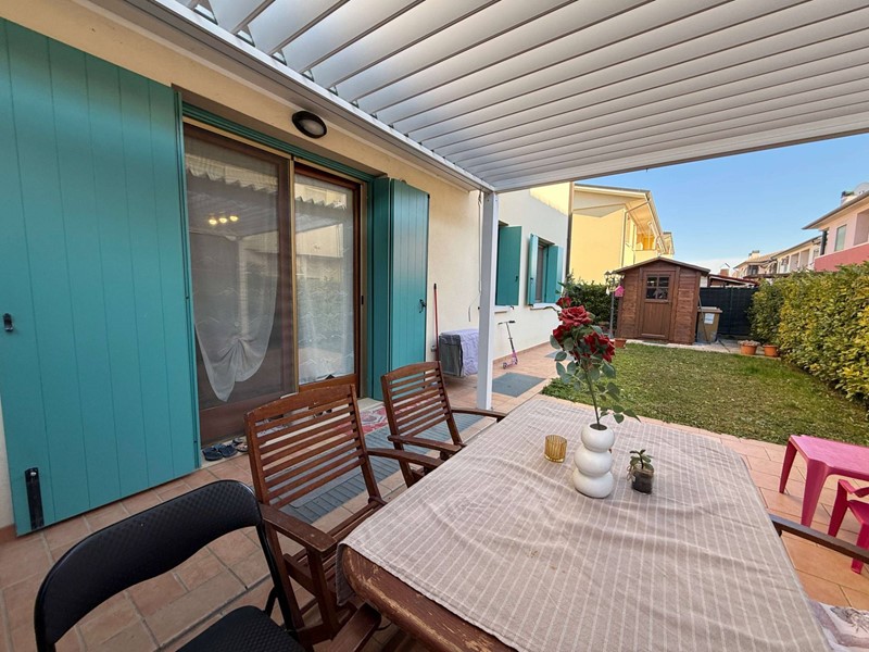 Limmobile, costruito nel 2006, ha una superficie di circa 110 mq ed è composto da due camere e un bagno. Dispone di giardino privato con pergolato e la proprietà è completata da garage e cantina.