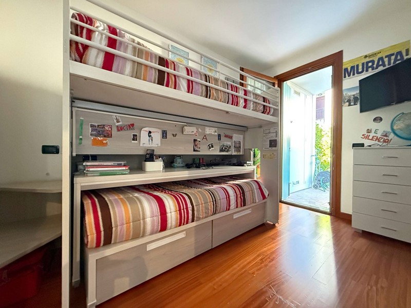 La zona notte è composta da due camere, di cui una matrimoniale e una doppia con accesso diretto al giardino. Completa la zona un bagno finestrato con doccia.