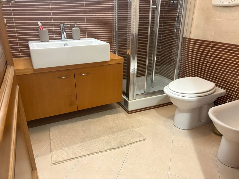 Dal soggiorno passiamo al corridoio dove troviamo sulla sinistra un comodissimo bagno con il box doccia e in fondo una grande camera da letto.