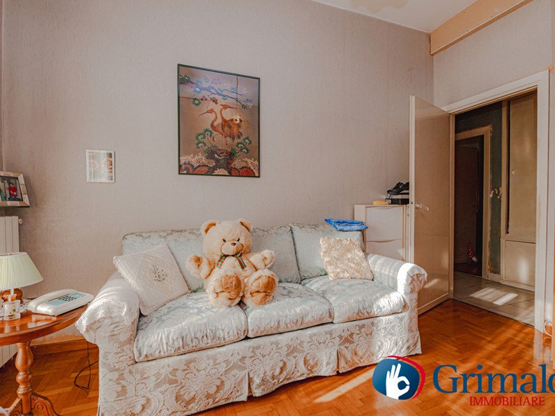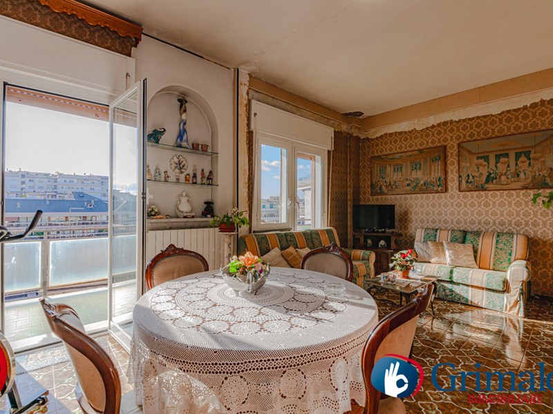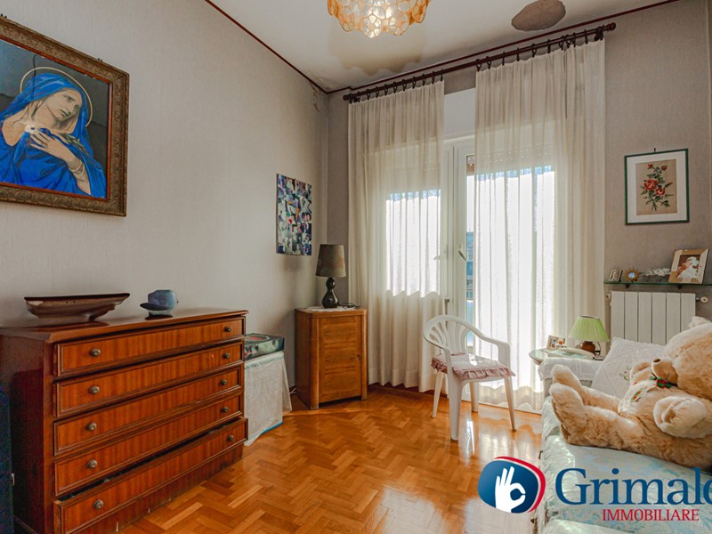 E' composto da ampio ingresso, salone doppio con affaccio sul balcone, cucina abitabile con accesso al secondo balcone, tre camere da letto, di cui una con balcone, studio/cameretta, doppi servizi finestrati, ripostiglio. Caratteristica peculiare della casa sono gli alti soffitti pari a m. 3.30. Completa la proprietà un indispensabile e comodo box auto.