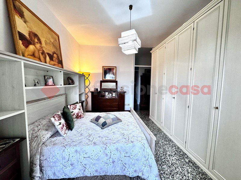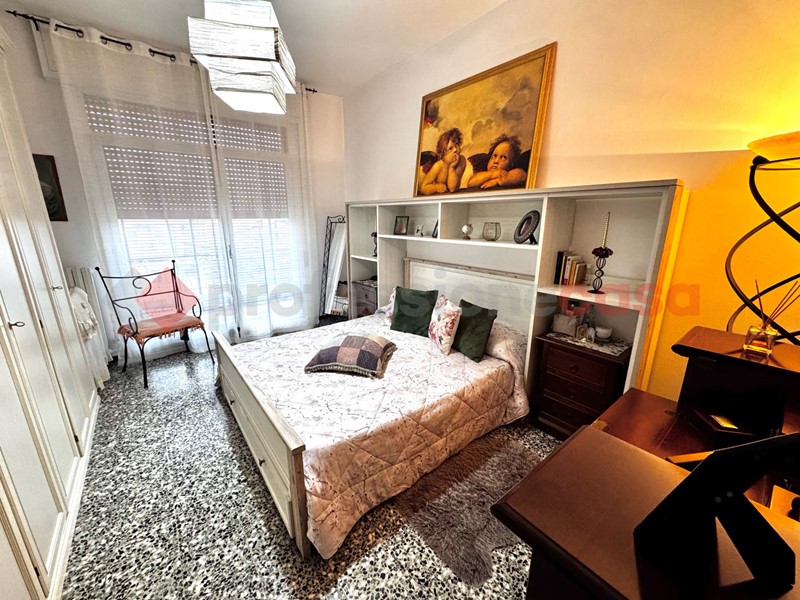 Sulla sinistra invece è collocata un'altra delle camere da letto, anch'essa di grandi dimensioni, con accesso diretto al balcone condiviso con la terza camera matrimoniale, ideale per godere di aria e luce naturale. Abbiamo poi il bagno finestrato, completo di box doccia e un comodo ripostiglio. Completa l'appartamento uno split per aria condizionata, garantendo comfort tutto l'anno, box singolo e cantina.