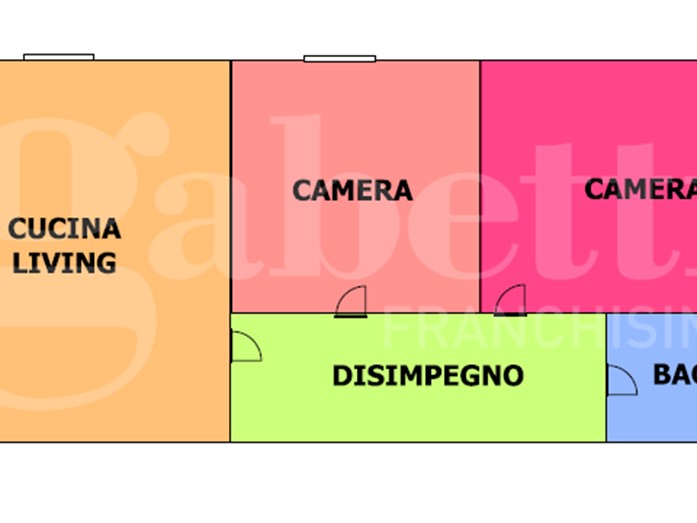 La soluzione, di circa 60 mq, è attualmente così composta: ingresso in soggiorno con cucina a vista, camera da letto, cameretta e servizio finestrato.