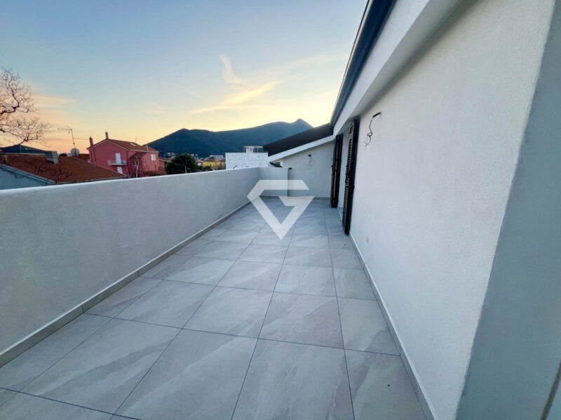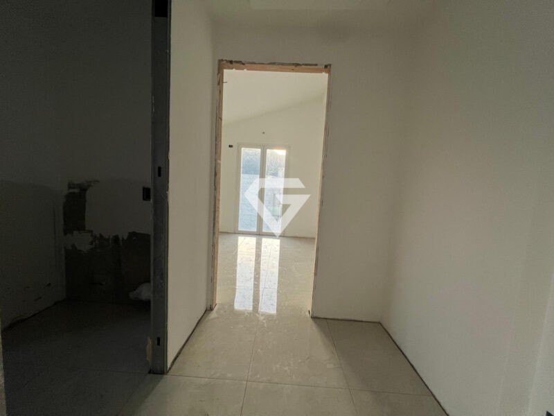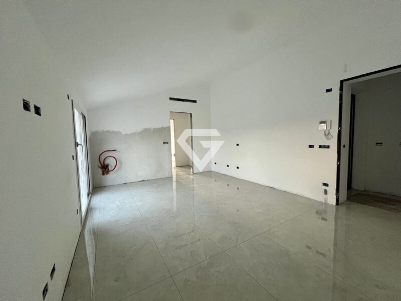 L' alloggio, ubicato al primo ed ultimo piano, è così disposto: ingresso su zona living con vetrate scorrevoli che accedono all' ampio terrazzo vivibile, disimpegno, bagno finestrato e camera matrimoniale.