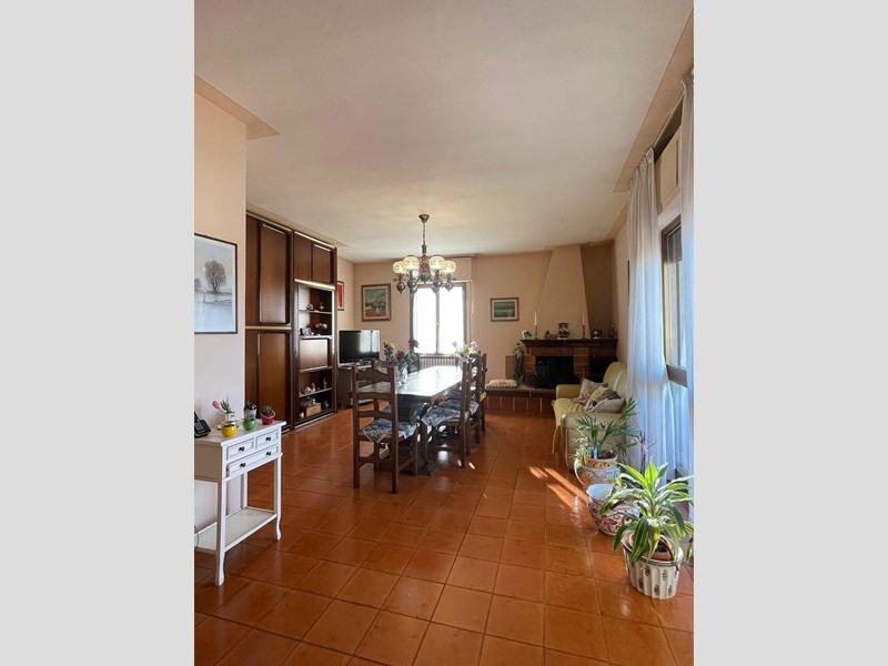 L’ingresso dell'appartamento apre su un ampio soggiorno, che si distingue per la sue doppie stanze ed il camino, creando un'atmosfera accogliente e raffinata; la disposizione open-space permette di avere una grande area living, con la possibilità di riqualificare l’ambiente, creando un soggiorno ancora più ampio se si decide di aprire il cucinotto per portarlo a vista.