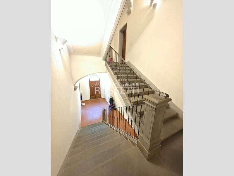Dalla bella scala a comune agli altri appartamenti si accede dal piano primo, con portoncino blindato, all'ampio soggiorno con angolo cottura e caminetto, allo studio, all'antibagno e bagno.
