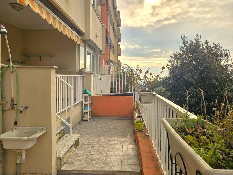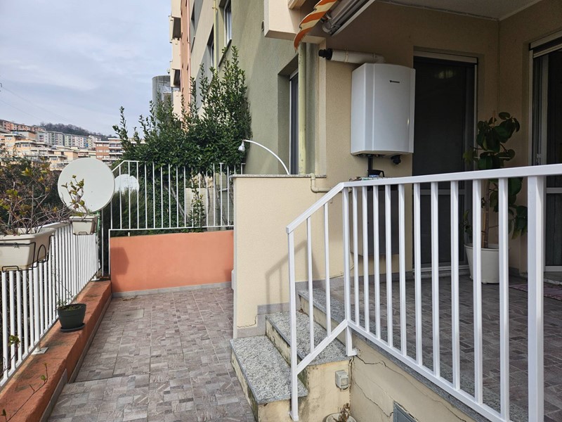 GENOVA GRANAROLO appartamento in vendita in Via Marzabotto ampi vani 4,5 con loggia, terrazzo, cantina e posto auto di proprieta. In edificio totalmente rinnovato con cappotto termico e parti comuni perfette, interni ristrutturati composti da ingresso, cucinino- soggiorno, una camera matrimoniale, ampio bagno, ripostiglio. Sia dalla zona giorno che dalla camera si accede alla loggia di circa 12 metri quadrati da qui si scende scendendo qualche gradino al terrazzo con lavandino e doccia per lestate , luce e tenda per ripararsi dal sole. Esposizione soleggiata a ponente, basse spese di amministrazione. Completano la proprietà una ampia cantina ed un posto auto scoperto. Edificio in posizione tranquilla e silenziosa nel verde con doppio accesso anche da Via Ferrara tramite funicolare leggera condominiale. Ideale giovani è acquistabile anche senza anticipo con rata mutuo inferiore ad un affitto di 570 mensili. Per tutte le nostre proposte e tutte le informazioni su questo appartamento in vendita a Genova Granarolo in Via Marzabotto: www.fondocasasanteodoro.it Tel. 010.242.59.59 ge-santeodoro@fondocasa.it.