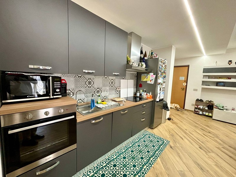 Appartamento di buona metratura composta da: Ingresso su ampia zona living con soggiorno ampio e cucina a vista attrezzata, 2 camere da letto, ripostiglio/dispensa, 2 bagni con box doccia (di cui uno finestrato), lavanderia funzionale, balcone ampio che comunica con la zona living, TERRAZZINO GODIBILE.
