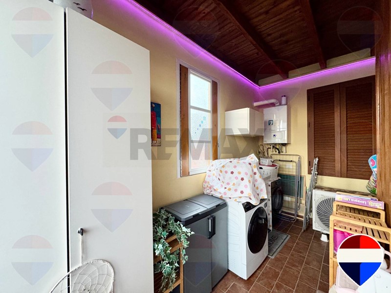 Laccesso avviene proprio dal terrazzo coperto di circa 50 mq, un autentico prolungamento della casa, ideale per chi desidera uno spazio esterno da vivere in ogni stagione. Larea include una comoda zona lavanderia già attrezzata e offre la possibilità di organizzare zone relax, pranzo o hobby con la massima privacy.