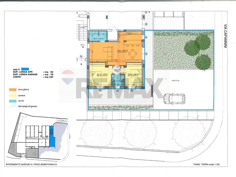 Completano la proprietà un garage di 70 mq e un posto auto su corte pavimentata.