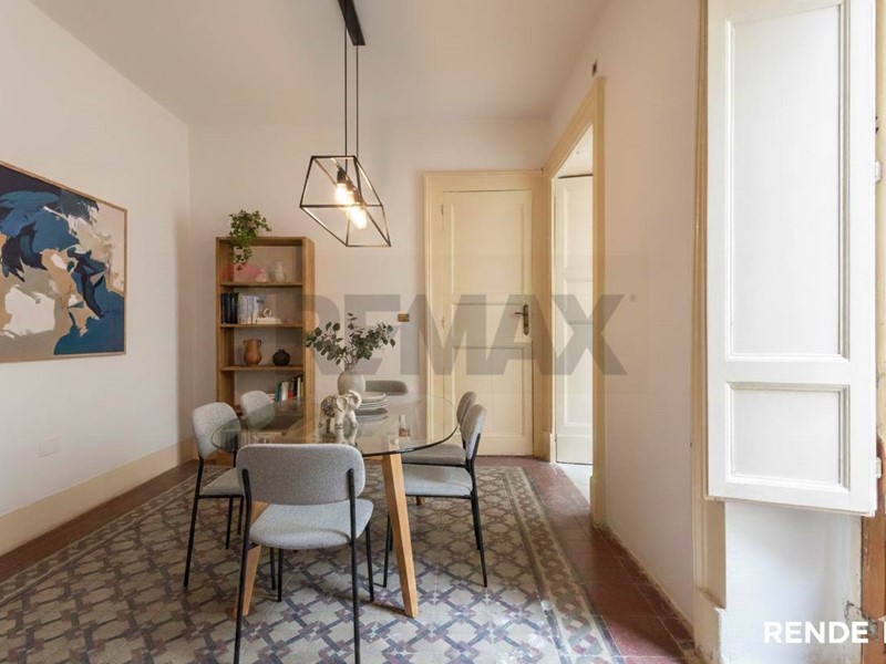 Lingresso conduce a una graziosa saletta che disimpegna due ampie e luminose camere, entrambe dotate di balconcini. Gli ambienti sono impreziositi da alti soffitti a volta con eleganti stucchi e da splendide cementine depoca originali, perfettamente conservate, elementi che conferiscono grande fascino e autenticità allimmobile.