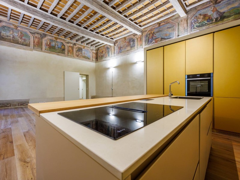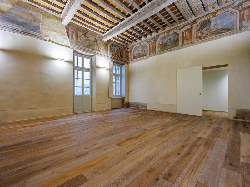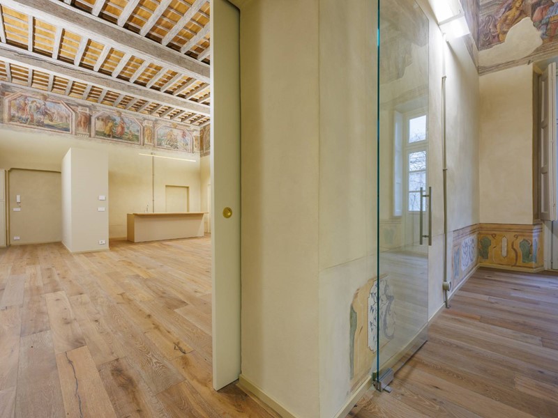 Nello splendido, seicentesco palazzo Frichignono di Castellengo, sito all'incrocio di Via San Dalmazzo e Via Barbaroux, grande appartamento al piano nobile, appena ristrutturato. L'ingresso porta direttamente al magnifico salone, di oltre 60 mq, con soffitti molto alti, travi a vista decorate e affreschi originali restaurati, corredato di cucina a vista. Il salone è collegato ad un bagno per ospiti, e alla camera padronale, di circa 25 mq, con bagno privato e grande cabina armadi. L'intero appartamento affaccia esclusivamente sui cortili interni e gode pertanto di estrema tranquillità.Una location di grande fascino e prestigio, che ci riporta alla nobiltà del passato, molto adatta anche a showroom di rappresentanza.Il canone di locazione indicato è comprensivo delle spese condominiali, il riscaldamento è a pavimento, autonomo, con caldaia a condensazione anche per la produzione di acqua sanitaria istantanea e termostati ambiente.