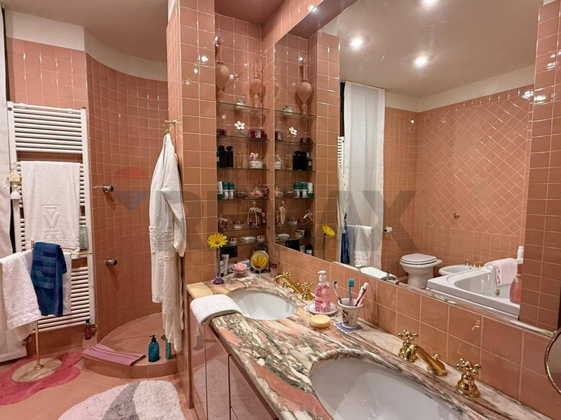 bagno padronale con vasca e doccia, rifinito con ceramiche di alto livello,