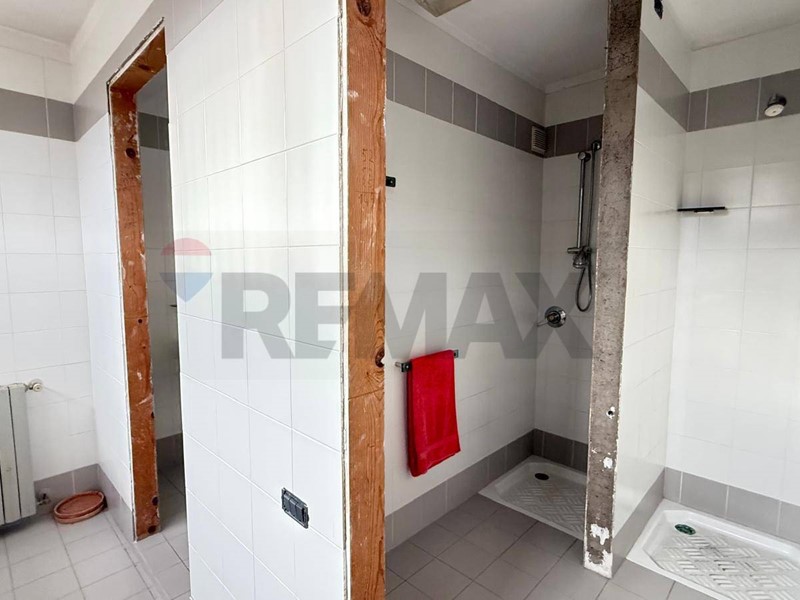 vano cantina con antibagno, bagno e due docce in fase di completamento, progettate per servire una futura piscina nel giardino,