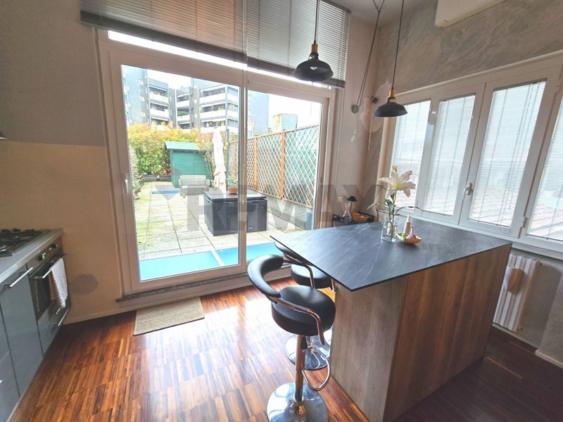 Limmobile, gode di una posizione interna molto silenziosa e risulta composto da unaccogliente zona living con cucina a vista attrezzata che si affaccia sul terrazzo dotato di impianto di irrigazione, zona notte con cabina armadio e bagno con vasca.