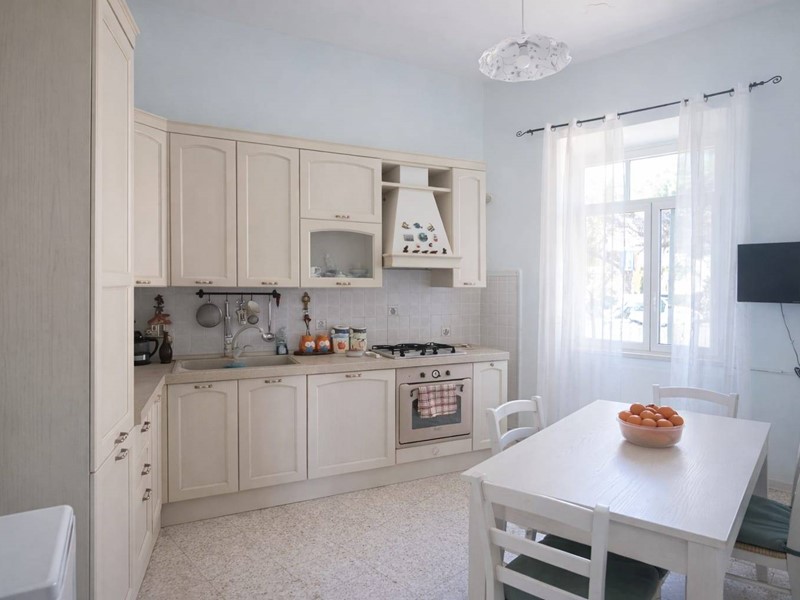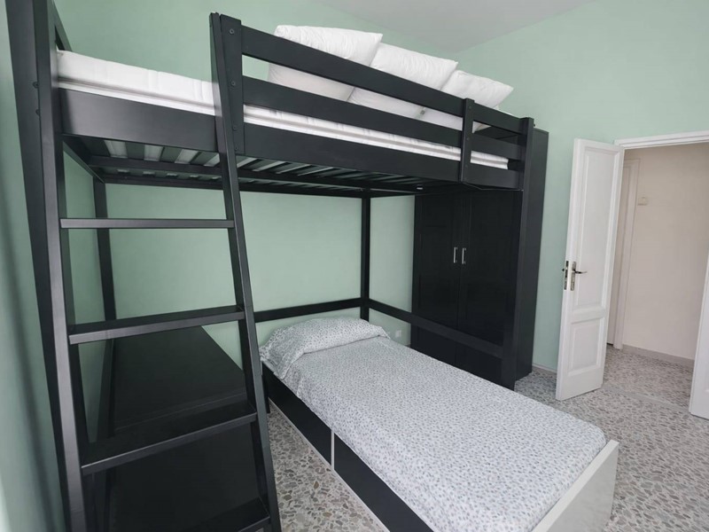 Limmobile si presenta in ottimo stato di manutenzione ed è caratterizzato da ambienti molto luminosi, grazie allesposizione aperta e alla presenza di ampie finestre. Lingresso si apre su un comodo corridoio che distribuisce in modo funzionale tutti gli ambienti della casa. La cucina è abitabile e ben separata dalla zona notte, composta da tre camere di generose dimensioni, ideali sia per una famiglia che per chi necessita di spazi comodi e versatili. Completano la proprietà un bagno, un pratico ripostiglio e un balcone angolare dal quale si gode di una vista aperta con scorcio di mare, elemento che rende labitazione particolarmente piacevole e ariosa.