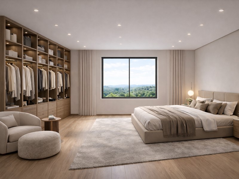 - camera da letto matrimoniale con cabina armadio ed accesso sul balcone lato cortile interno